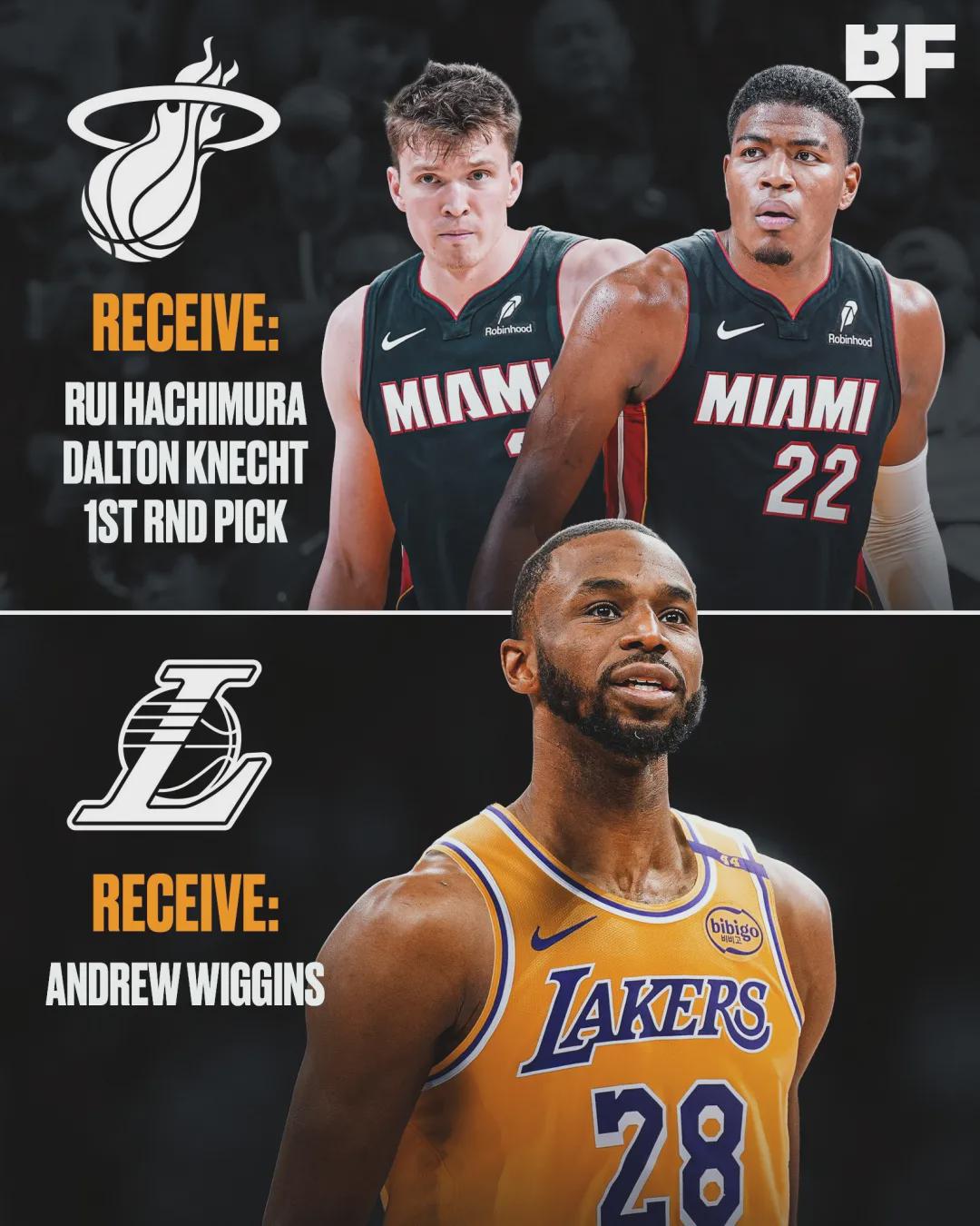 前湖人队记Buha:热火希望在维金斯交易中,从湖人换回八村塁+克内克特+一个首轮签......