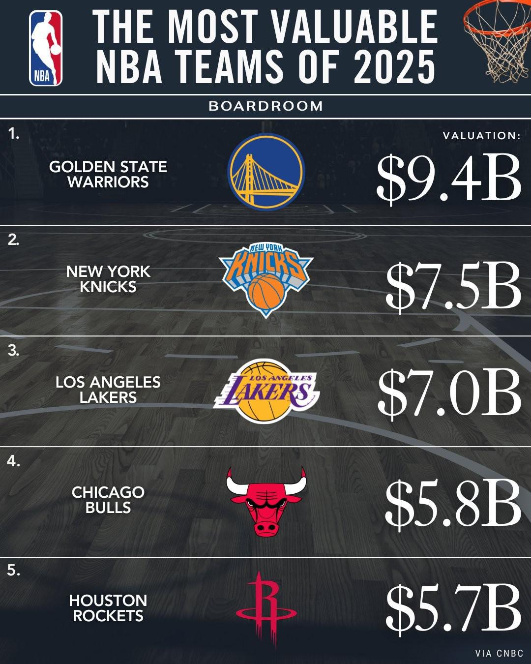 在此前美国商业媒体Boardroom在今年公布的NBA市值排行榜中,湖人队的估值为70亿美元位列第三。此次100亿美元的成交值远远大于湖人队的估值。